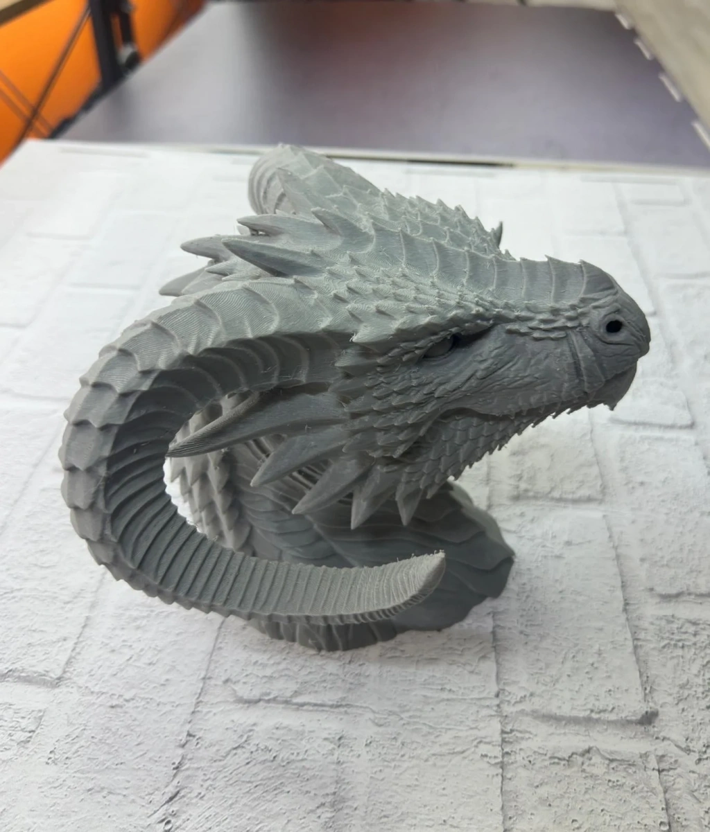Bu 22 x 17 cm ölçülerindeki ejderha başı heykeli, koleksiyon ve fantastik evren tutkunları için kusursuz bir dekoratif objedir. Ürünün tasarımında yer alan tüm detaylar; yüz hatlarındaki keskinlik, boynuzların güçlü formu ve pul dokusunun detaycılığı, heykeli son derece gerçekçi bir görünüme kavuşturur. Masa üstünde, raflarda, vitrinlerde ya da tematik dekorasyonlarda sergilenmeye uygun yapıdadır.Mitolojik tasarımları sevenlere hitap eden bu figür, özenle şekillendirilmiş güçlü duruşuyla büyüleyici bir atmosfer yaratır. Dekoratif amaçlı kullanımda mekâna hem fantastik hem de mistik bir hava katarken, koleksiyon parçası olarak kullanıldığında bulunduğu serinin en iddialı öğelerinden biri haline gelir.Yeni ev hediyesi, koleksiyon hediyesi veya fantastik dekor meraklıları için özel bir armağan olarak tercih edilebilir. Kaliteli ve dayanıklı yapısıyla uzun süre sorunsuzca kullanılabilir.