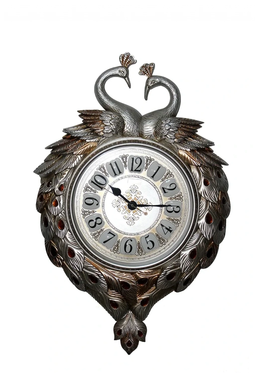 TAVUSKUŞU DUVAR SAATİÜrün ÖzellikleriTavuskuşu Duvar Saati, görkemli tasarımı ve estetik detaylarıyla yaşam alanlarınıza zarif bir dokunuş katar. 70x50 cm boyutlarında olup, geniş yapısı sayesinde duvar dekorasyonunda dikkat çeker. Birinci sınıf kaliteli polyester malzemeden üretilmiştir, uzun ömürlü ve dayanıklıdır. Tavuskuşu figürleri ve tüy detayları, göz alıcı süslemelerle tamamlanarak lüks ve klasik tarzı bir araya getirir. Sessiz mekanizması sayesinde rahatsız edici tıkırtılar olmadan huzurlu bir ortam sunar.Paket İçeriği1 Adet Tavuskuşu Duvar Saati